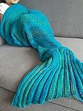 Yowao Mermaid Tail Blanket Adult Handmade Knitted Fish Scales Pattern and All Seasons Warm Your Feet Sleeping Bag 74.86 x 35.46 inch (190x90cm) (Blue Lake)