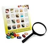 BEADNOVA Gemstone Rock Collection Kit for Kids Geology Science Learning with Magnifier Reading Glass (Pack of 20pcs)