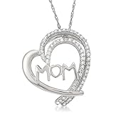 14k White Gold Round Diamond Mom Heart Pendant Necklace (1/6 cttw, H-I, I2-I3)
