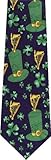 Mens St. Patrick’s Day Lucky Shamrock Clover Novelty Necktie Holiday Gift (Navy Blue & Green)